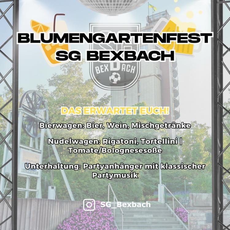 Am kommenden Wochenende steht das diesjährige Blumengartenfest der Stadt Bexbach vor der Tür. Und auch in diesem Jahr ist die SG Bexbach mit am Start.💙🤍🖤